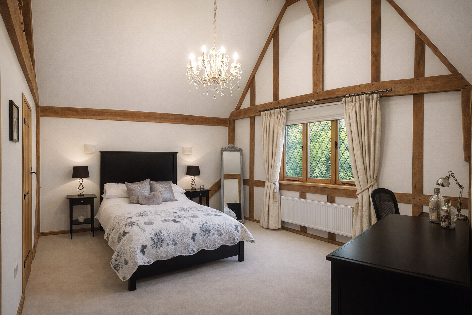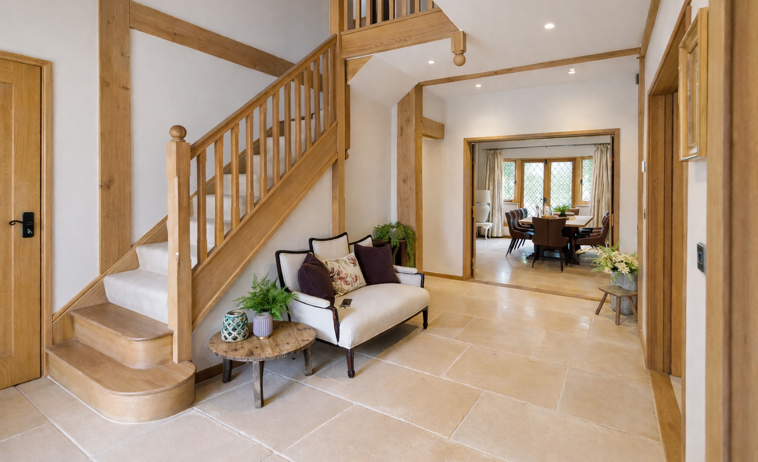 • Oak frame structure with vaulted ceilings